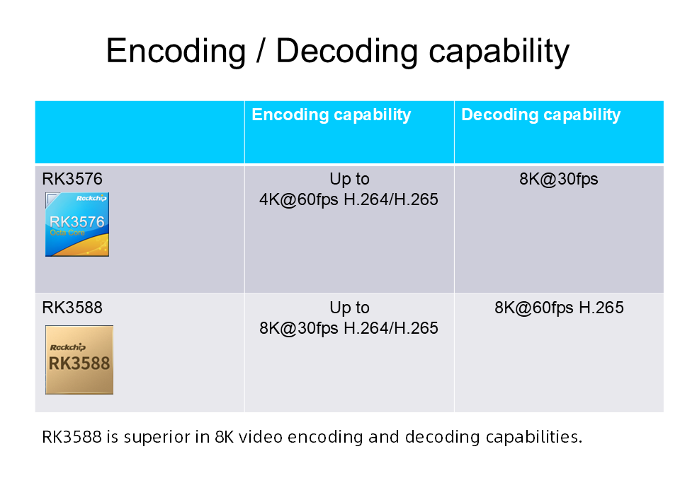 RK3588 og RK3576 har supervideo -kodningskapaciteter.