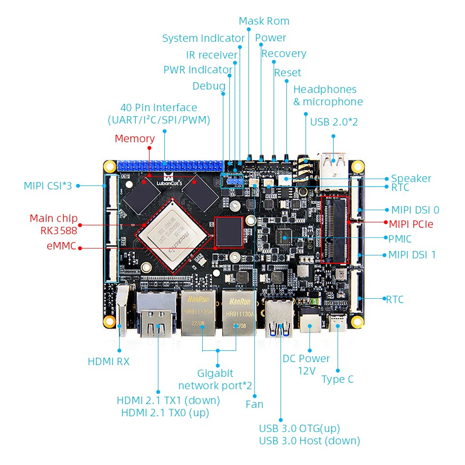 1.1 Både kommercielle og industrielle kernebestyrelser og udviklingsbestyrelser er tilgængelige. RK3588J Industrial Board har bestået -40 ℃ ~ 85 ℃ bred temperaturtest og opfylder de strenge krav i industrielle scenarier.
